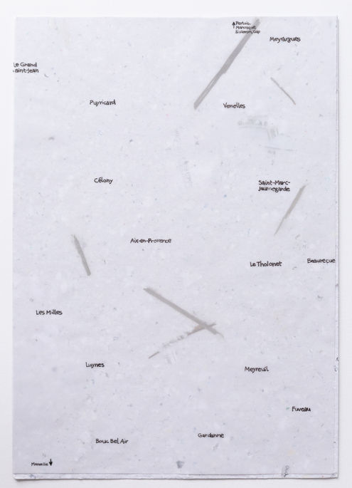 The cartographies are made in layers and show affective symbologies with a place. Based on the maps I received in the south of France when I arrived, I've recorded here what connects me to that territory and why I chose to live there: the heat, the region, nature, the sea, the university, Provence.